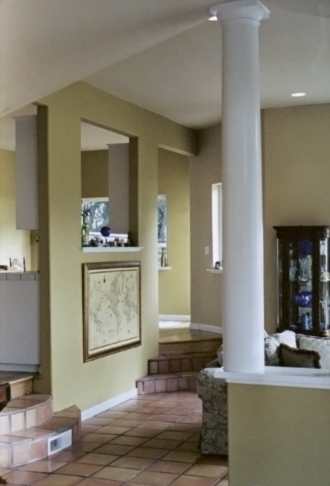 Classic columns flank the entryway allowing gentle separation from the nicely styled sitting room.